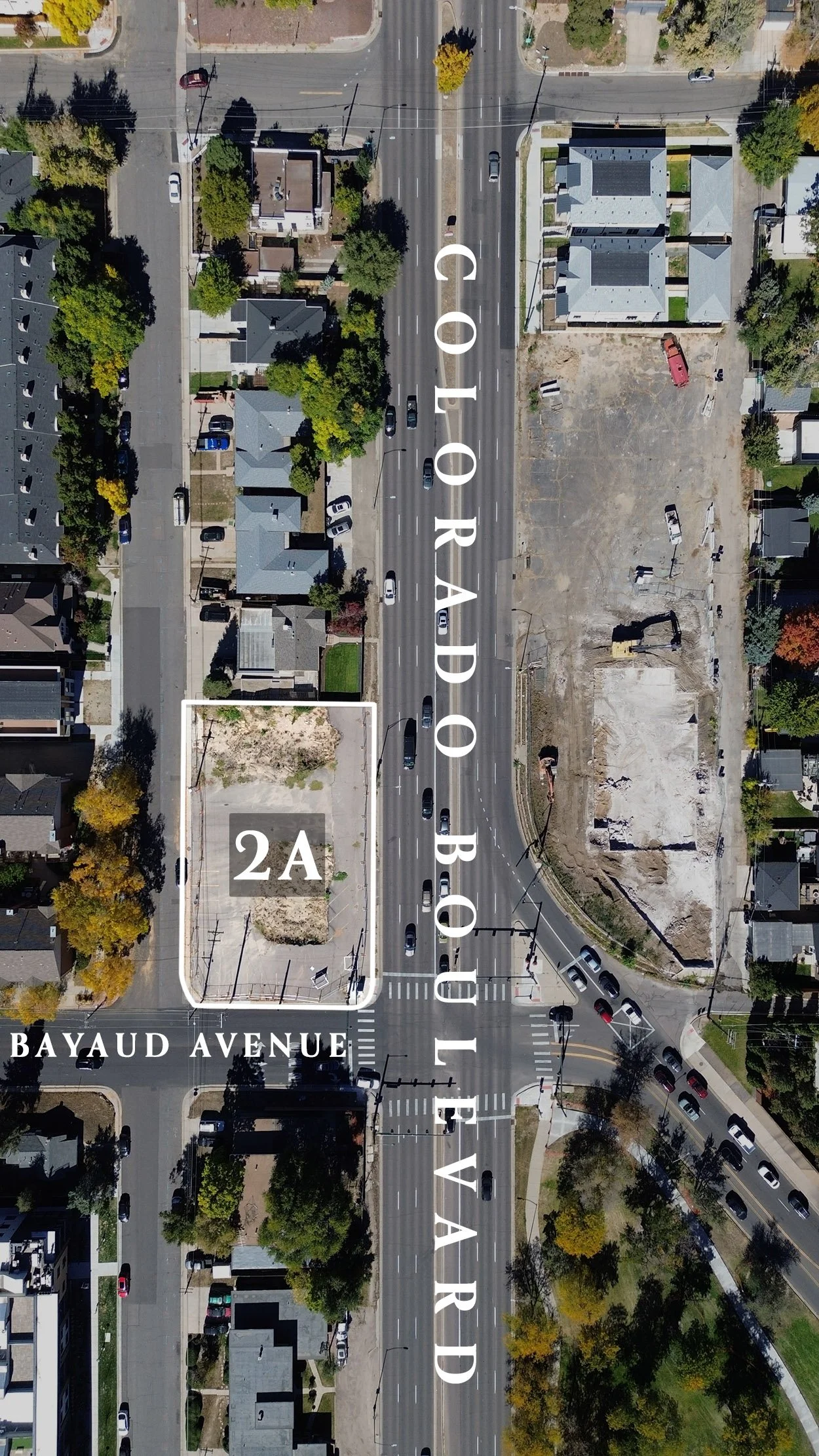 Two parcels at the entrance to the Cherry Creek East neighborhood, located at Bayaud Avenue and Colorado Boulevard.